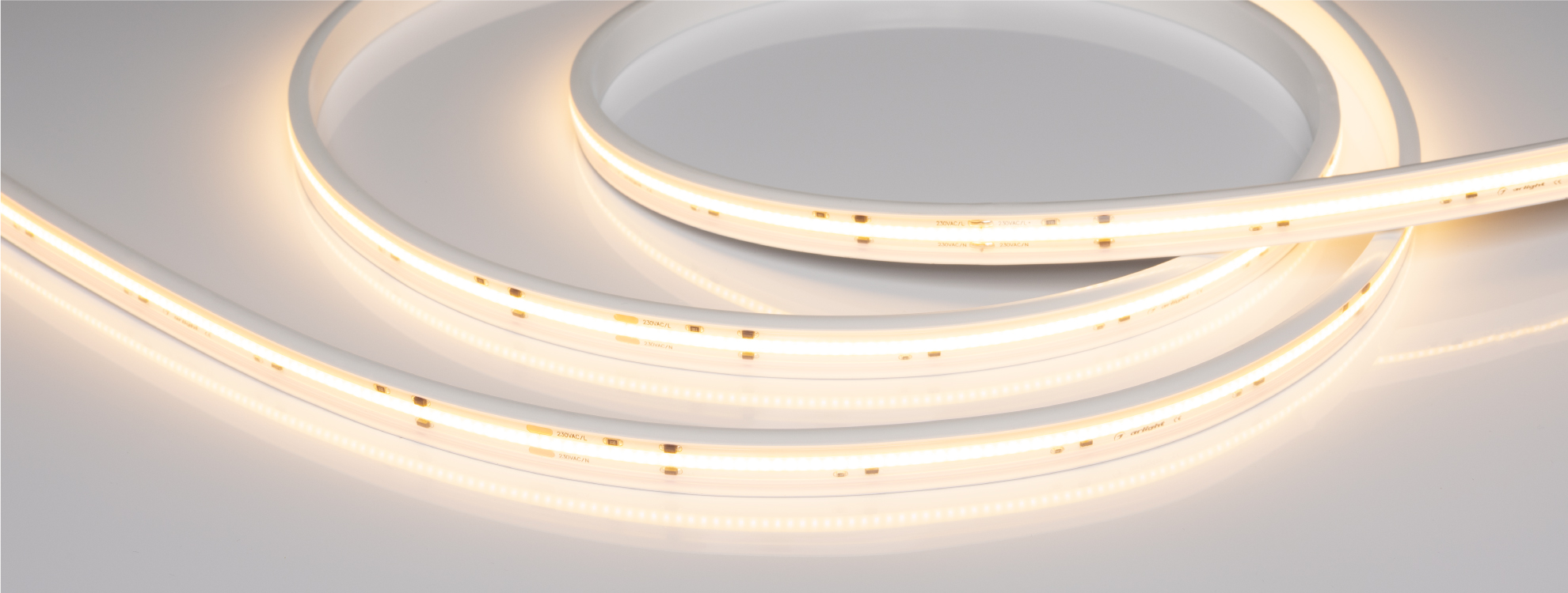 Уникальность Первая COB-лента с подключением к сети 230 В, с высокой плотностью светодиодов 720 шт/м.