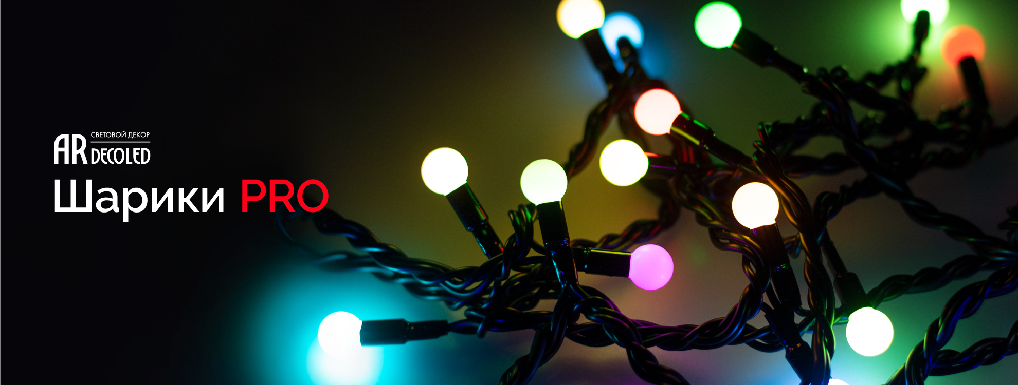 Гирлянда «Шарики» серии PRO поможет создать праздничное настроение в помещениях и на улице под навесом: ее используют для оформления витрин, рекламных конструкций, вывесок и окон, а также для создания растяжек между фонарями и деревьями. За счет прочного каучукового провода гирлянды данной серии можно уверенно применять в крупных коммерческих проектах.