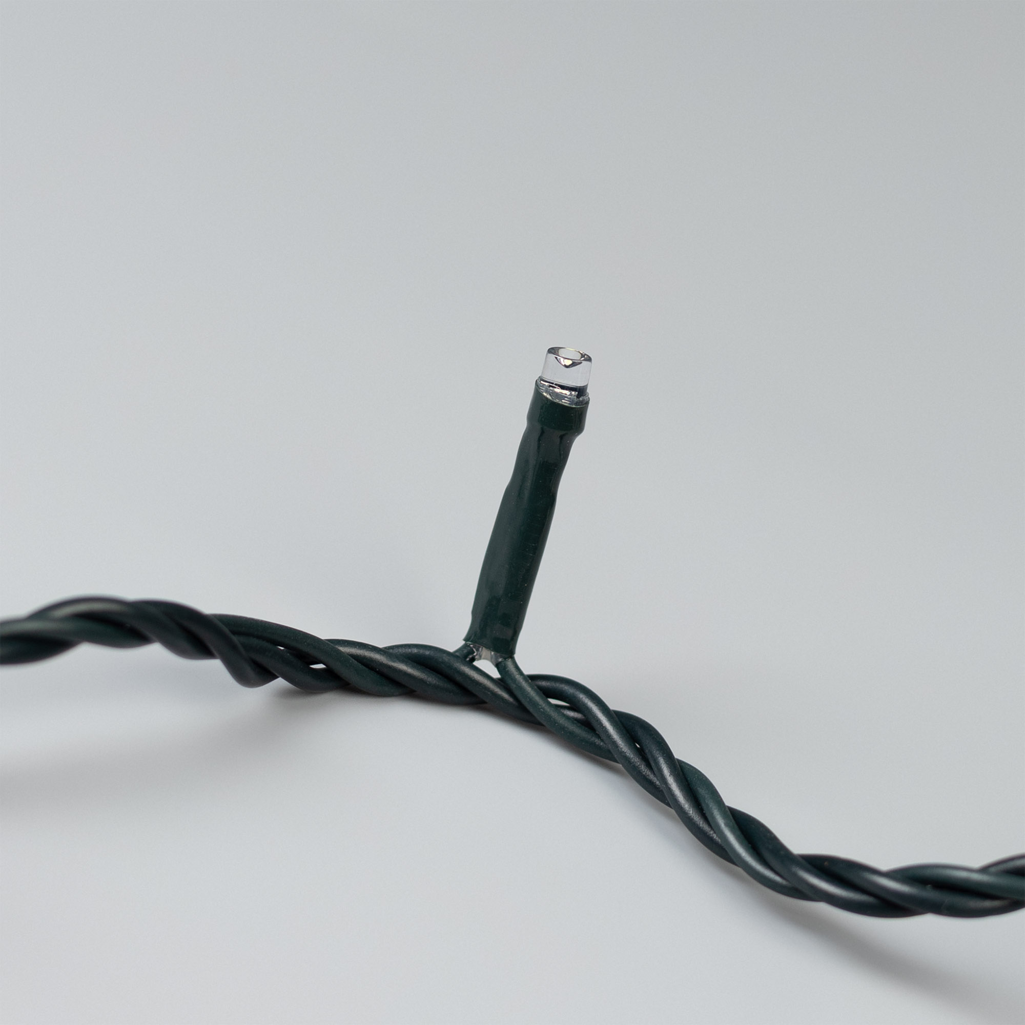 Универсальная светодиодная гирлянда "НИТЬ" серии Home, предназначенная для декорирования и создания праздничного настроения внутри помещений. Имея длину 5000 мм, она может использоваться для оформления небольших и средних площадей. Универсальные соединительные разъемы позволяют наращивать длину до 50 м без использования дополнительных аксессуаров. Прозрачная вогнутая линза и эффект мерцания редких точек обеспечивают яркое и динамичное освещение, выделяя украшаемые объекты. Холодный белый свет помогает создать необходимую атмосферу для декоративного объекта. Провод изготовлен из ПВХ и окрашен в зелёный цвет. Аксессуар для подключения гирлянды к сети уже в комплекте.