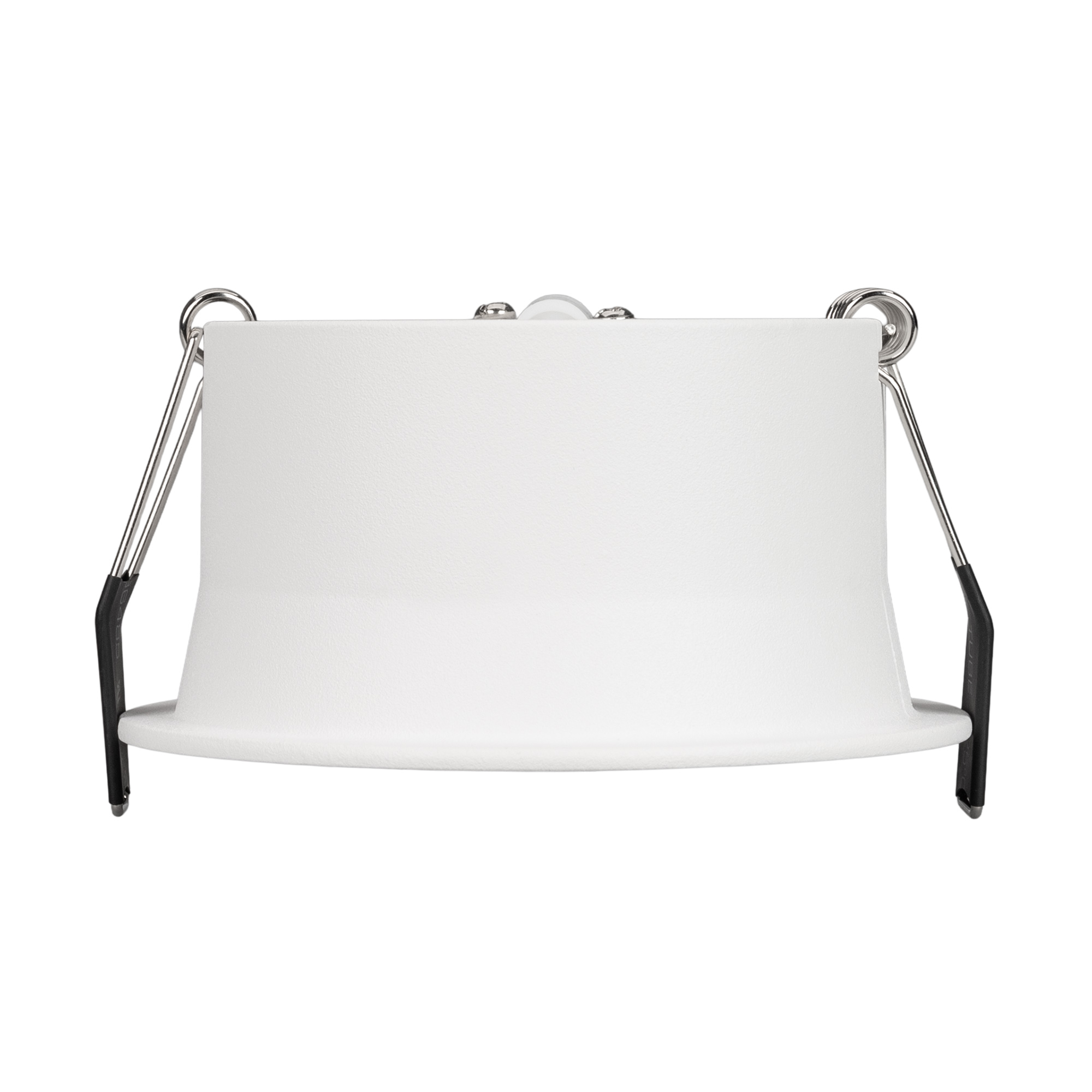 Встраиваемый круглый светильник с индексом цветопередачи CRI>90 и низкой пульсацией обеспечивает равномерное освещение без мерцания и видимости точек светодиодов с точной передачей цветовых оттенков. Алюминиевый корпус белого цвета с утопленным светодиодным модулем является интересным дизайнерским решением, создавая эффект света из ниоткуда и делая освещение комфортным для глаз. Особая конфигурация корпуса позволяет эффективно отводить тепло и продлевает срок службы светодиодов. Светильник с широким углом излучения 90 градусов и световой эффективностью 70 лм/Вт подходит для качественного основного освещения. Легко устанавливается с помощью пружин в монтажное отверстие. Драйвер поставляется в комплекте и позволяет быстро подключать светильник напрямую к сети переменного тока 230 В. Диммирование возможно при замене штатного драйвера. Степень защиты от пыли IP20 позволяет применять модель в жилых, коммерческих, торговых и других помещениях, где отсутствует контакт с водой.