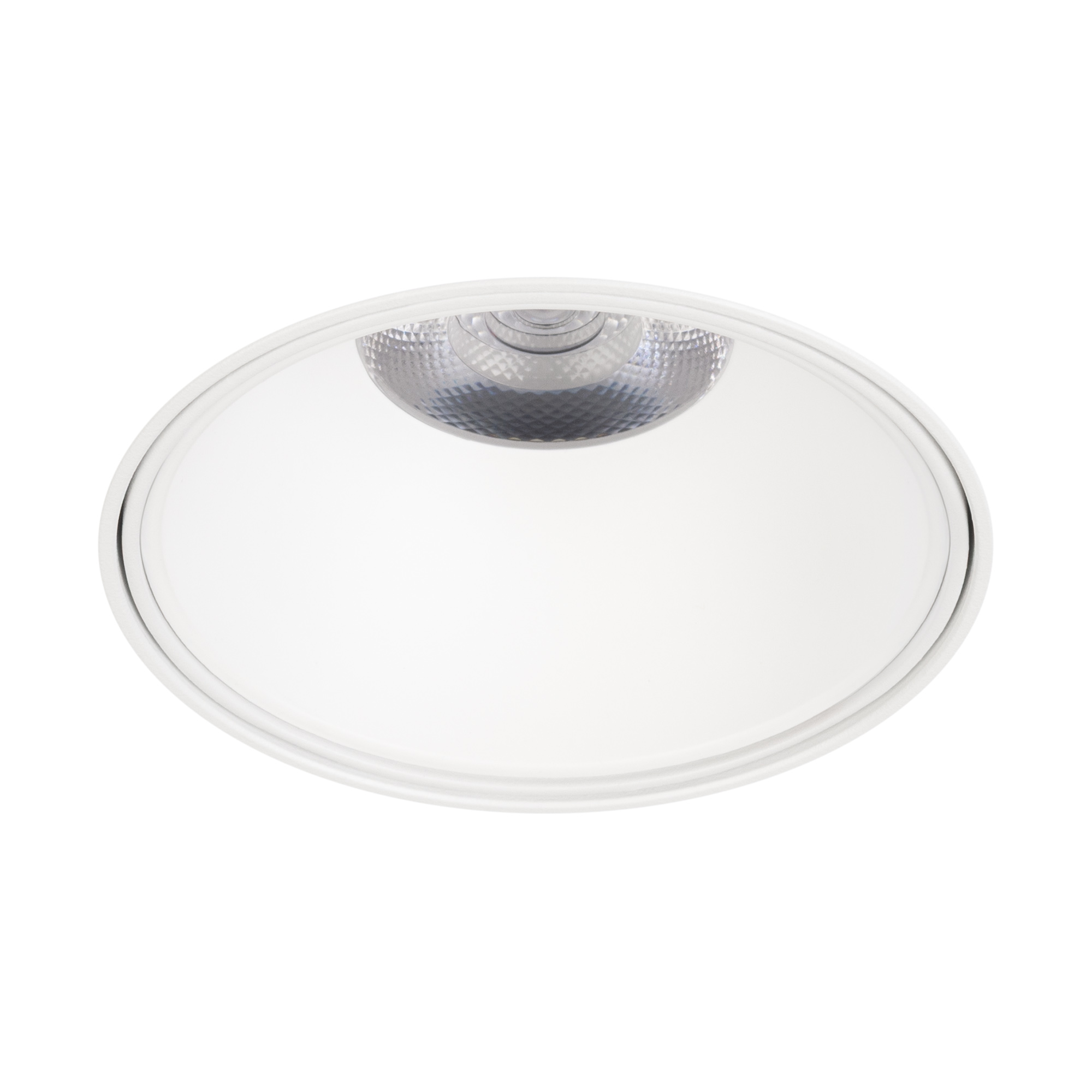 Встраиваемый безрамочный светильник под шпаклевку. Мощность 12 Вт, св. поток 946 лм, 72 лм/Вт, тёплый 3000 K, CRI>90, угол 32°, напряжение питания 230 В. Белый круглый корпус из алюминия, белый МАТОВЫЙ отражатель из PMMA, степень защиты IP20. Размер: диаметр 110 мм, высота 70 мм. Монтаж встраиваемый, установочное отверстие диаметр 85 мм. Драйвер 20-40 В, 300 мА, пульсация <2%.