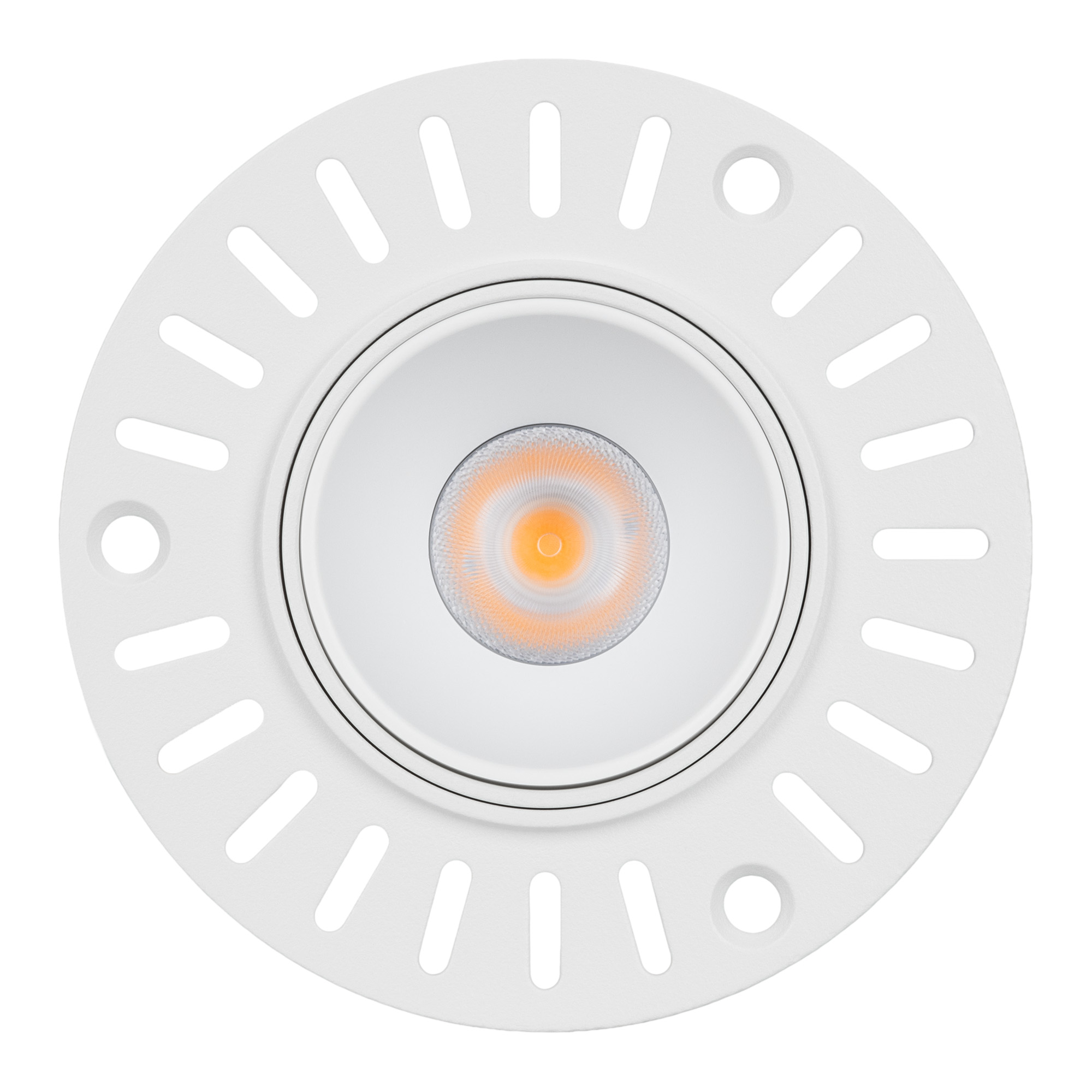 Встраиваемый безрамочный светильник под шпаклевку мощностью 8.4 Вт. Предназначен для освещения жилых, офисных, торговых и других помещений. Дневной белый цвет свечения (4000 К) и световой поток 800 лм. Заглубленная оптика ограничивает боковое излучение, тем самым исключая появление ослепляющего эффекта. Высокий индекс цветопередачи (CRI>90) и узкий угол излучения 32° для локального освещения. Светильник встраивается в установочное отверстие диаметром 65 мм. Драйвер в комплекте для подключения к сети 230 В.