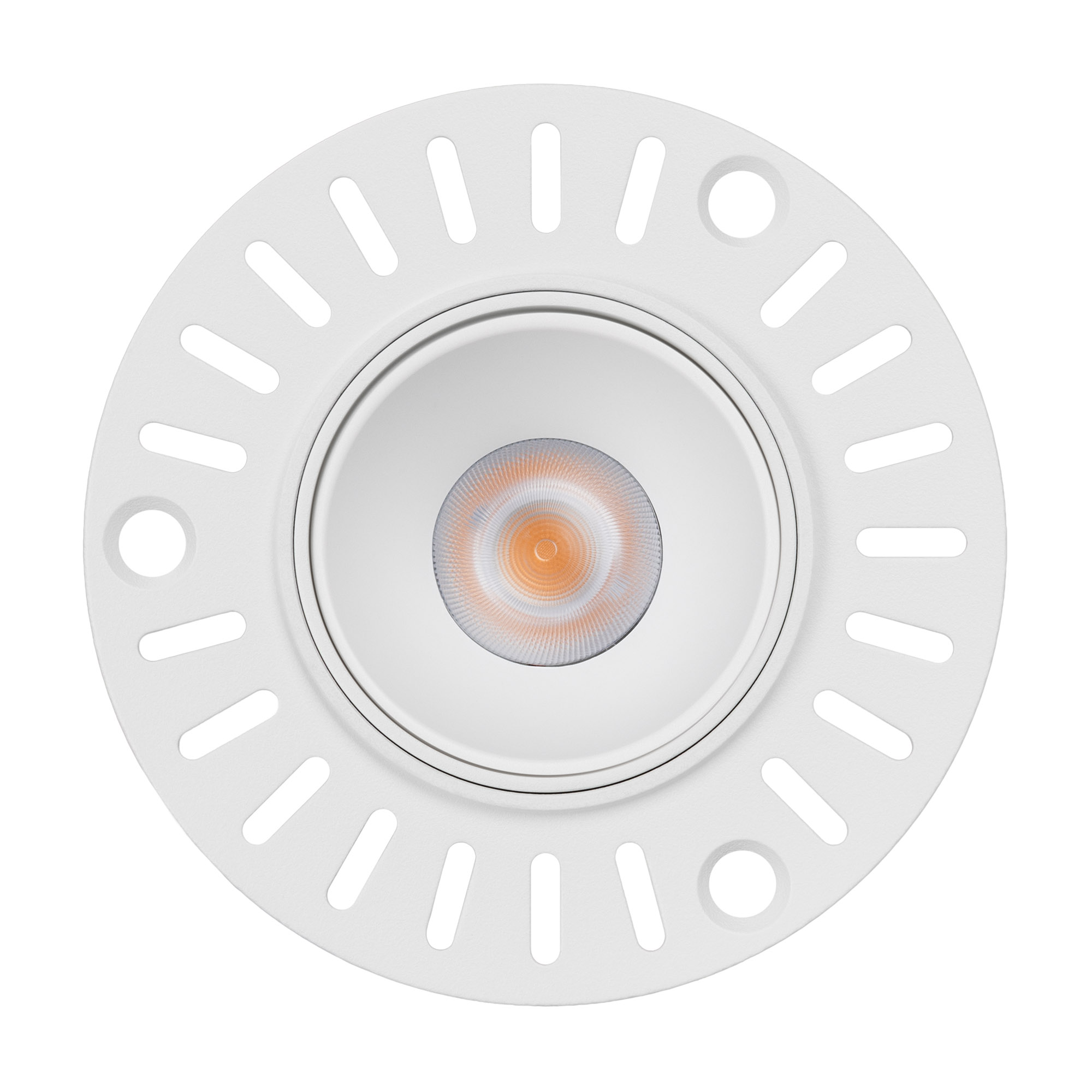 Встраиваемый безрамочный светильник под шпаклевку мощностью 6.3 Вт. Предназначен для освещения жилых, офисных, торговых и других помещений. Теплый белый цвет свечения (3000 К) и световой поток 455 лм. Заглубленная оптика ограничивает боковое излучение, тем самым исключая появление ослепляющего эффекта. Высокий индекс цветопередачи (CRI>90) и узкий угол излучения 40° для локального освещения. Светильник встраивается в установочное отверстие диаметром 65 мм. Драйвер в комплекте для подключения к сети 230 В.