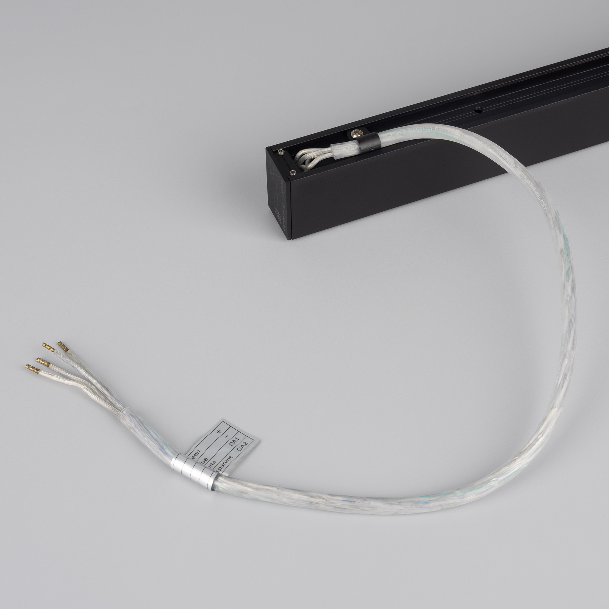 Подвесной, накладной магнитный трек, длина 2000 мм. DC24V, позволяет диммировать светильники по протоколу DALI. Материал алюминий, цвет черный. Две заглушки в комплекте. Размер ДxШxВ: 2003x25x38 мм. Размер (с учетом заглушек). Аксессуары для подвесного монтажа в комплект не входят. Не подходит к профилю держателю 035719. К плате идет провод 24В длиной 1м.
