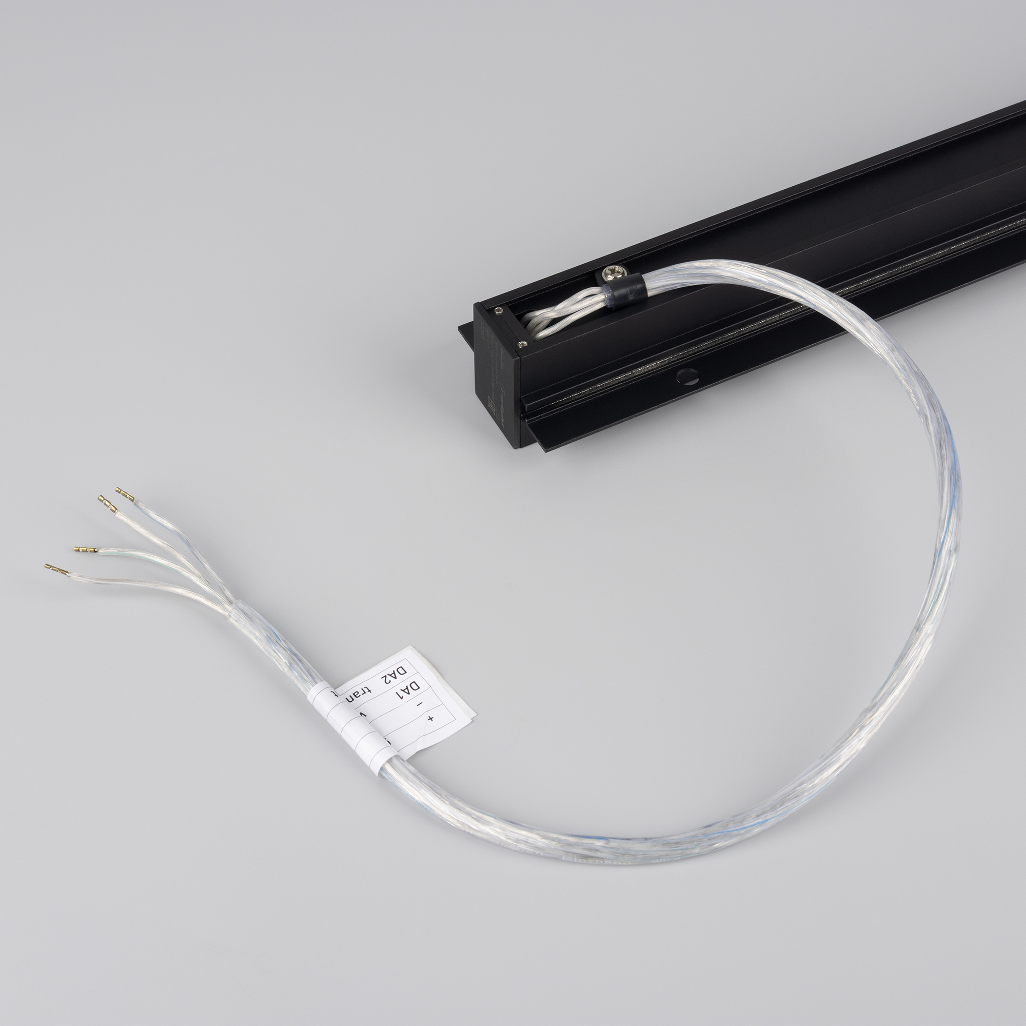 Встраиваемый магнитный трек с фланцем для монтажа в гипсокартонный потолок, длина 1000 мм. DC24V, позволяет диммировать светильники по протоколу DALI. Материал алюминий, цвет черный. Две заглушки в комплекте. Размер ДxШxВ: 1003x55x38 мм. Размер (с учетом заглушек и фланцев). К плате идет провод 24В длиной 1м.