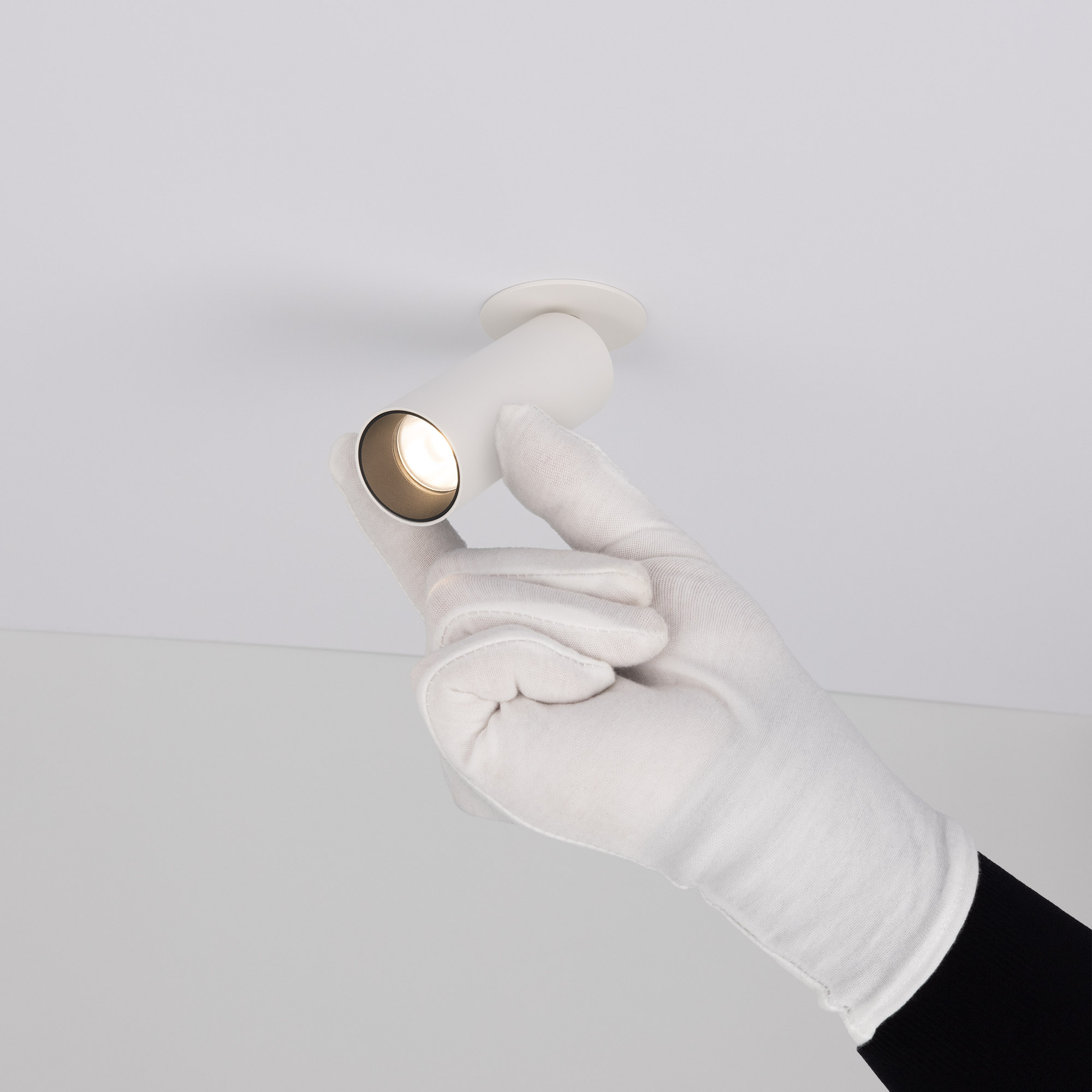Светильник встраиваемый откидной. Мощность 7 Вт, св. поток 490 лм, 70лм/Вт, теплый 3000 K, CRI>90, угол 36°, напряжение питания 230 В. Белый круглый корпус из алюминия, экран PMMA, степень защиты IP40. Размер: диаметр 35 мм, высота светового модуля 90 мм, высота основания 1.5 мм. Угол поворота 350°, угол наклона 90°. Монтаж встраиваемый, установочное отверстие: диаметр 45 мм, глубина 29 мм. Драйвер в комплекте 30-40 В, 150 мA, пульсация <1%.