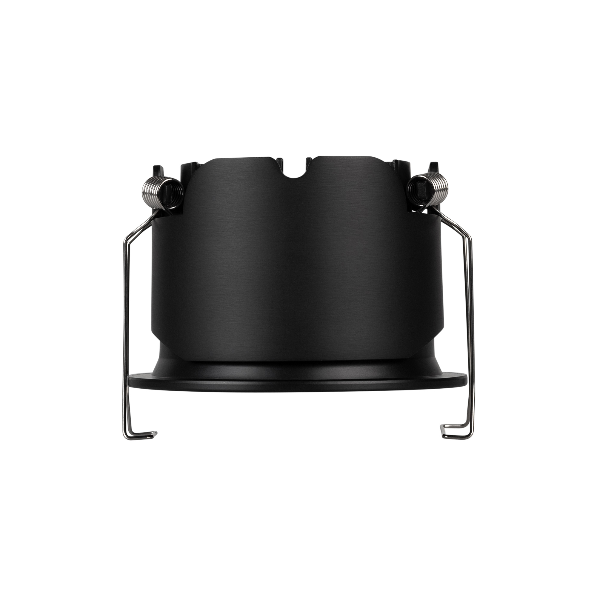 Встраиваемый светильник даунлайт. Мощность 10 Вт, св. поток 980 лм, 98 лм/Вт, дневной 4000 K, CRI>90, угол 24°, напряжение питания 230 В. Чёрный круглый корпус из алюминия, степень защиты IP20. Размер: диаметр 82 мм, высота 53 мм. Монтаж встраиваемый, установочное отверстие: диаметр 75 мм. UGR<14. Драйвер 30-42 В, 250 мА, пульсация <2%.