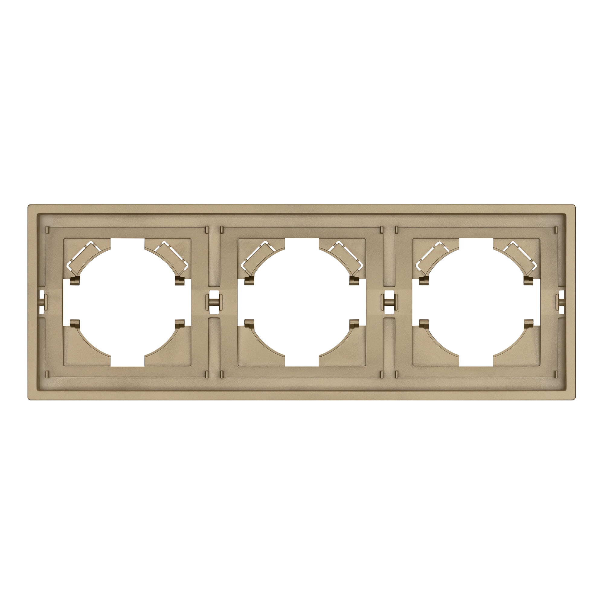 Рамка пластиковая на 3 поста, под встраиваемый механизм. Цвет - золотой, с Soft-Touch покрытием. Среднего уровня герметичности IP20. Ориентация монтажа горизонтальная. Габаритные размеры: длина 221 мм, ширина 80 мм, высота 9 мм. Гарантийный срок 12 мес.