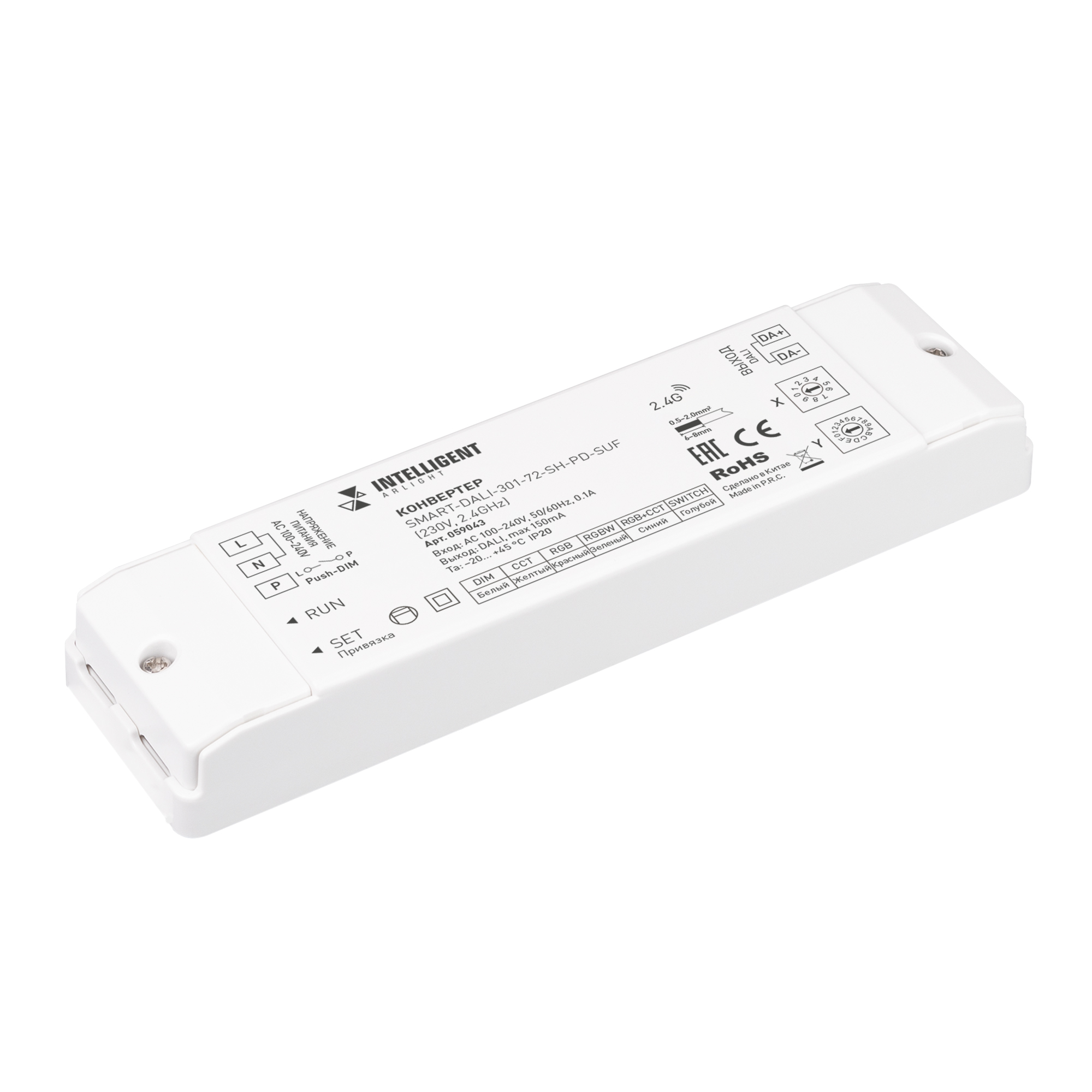 INTELLIGENT ARLIGHT Конвертер SMART-DALI-301-72-SH-PD-SUF (230V, 2.4GHz) (IARL, IP20 Пластик, 5 лет)