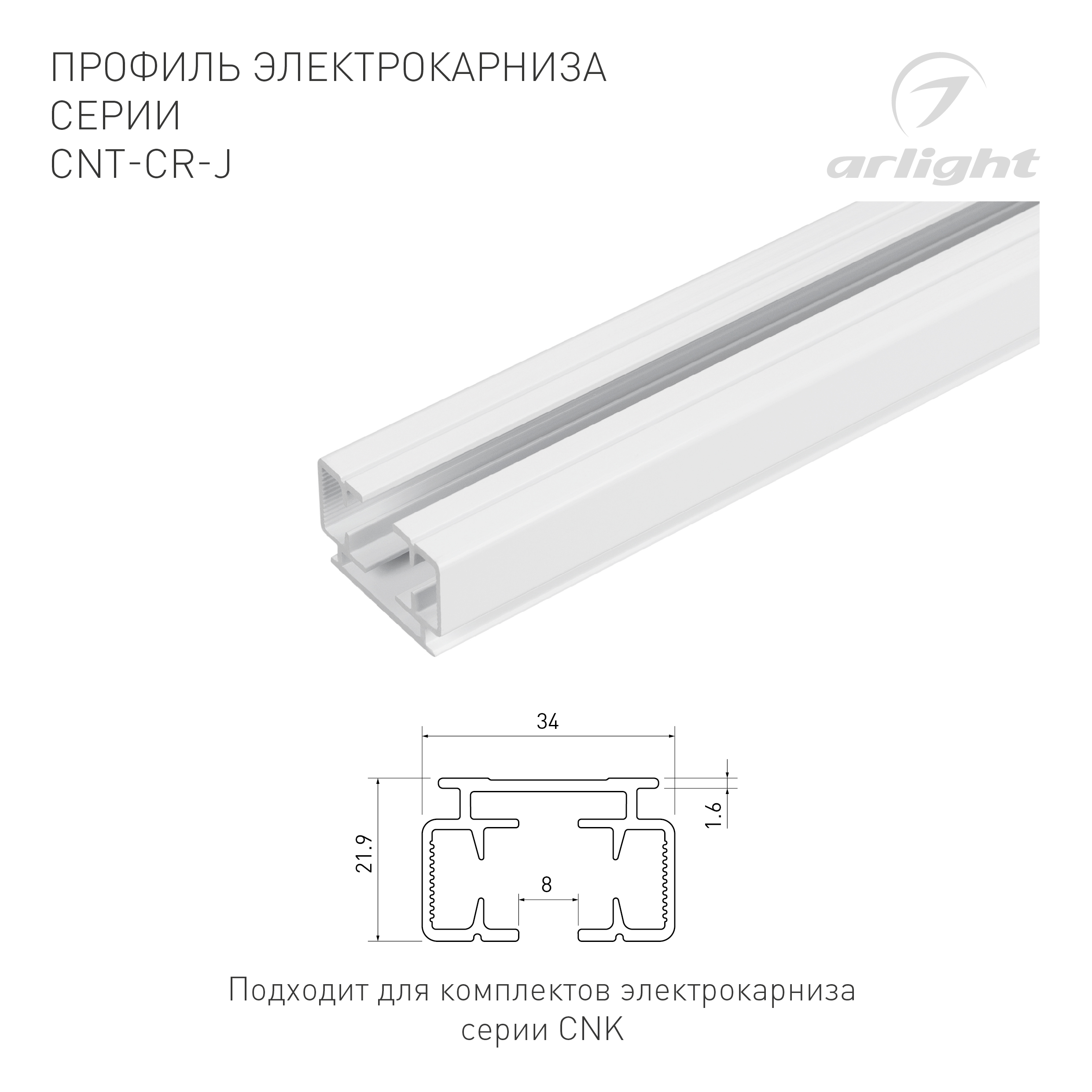 Профиль электрокарниза CNT-CR-J-3m (Arlight, Алюминий)