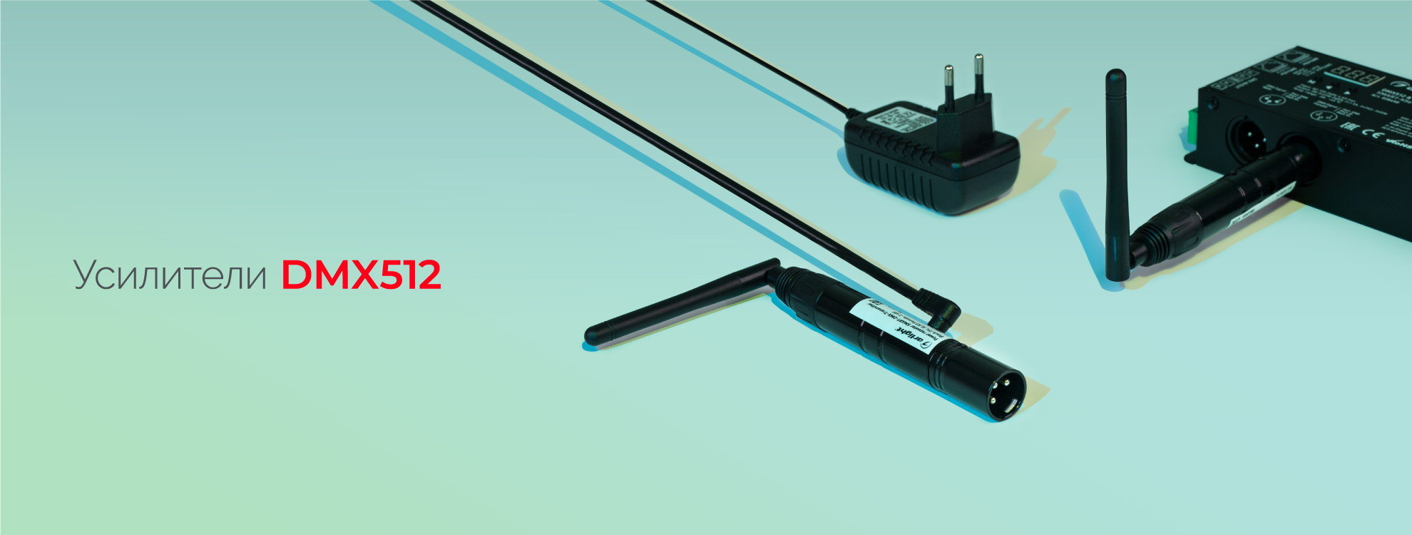 Усилители DMX-сигнала предназначены для увеличения дальности передачи DMX-сигнала между различными устройствами или количества DMX-декодеров, подключаемых к одной шине.