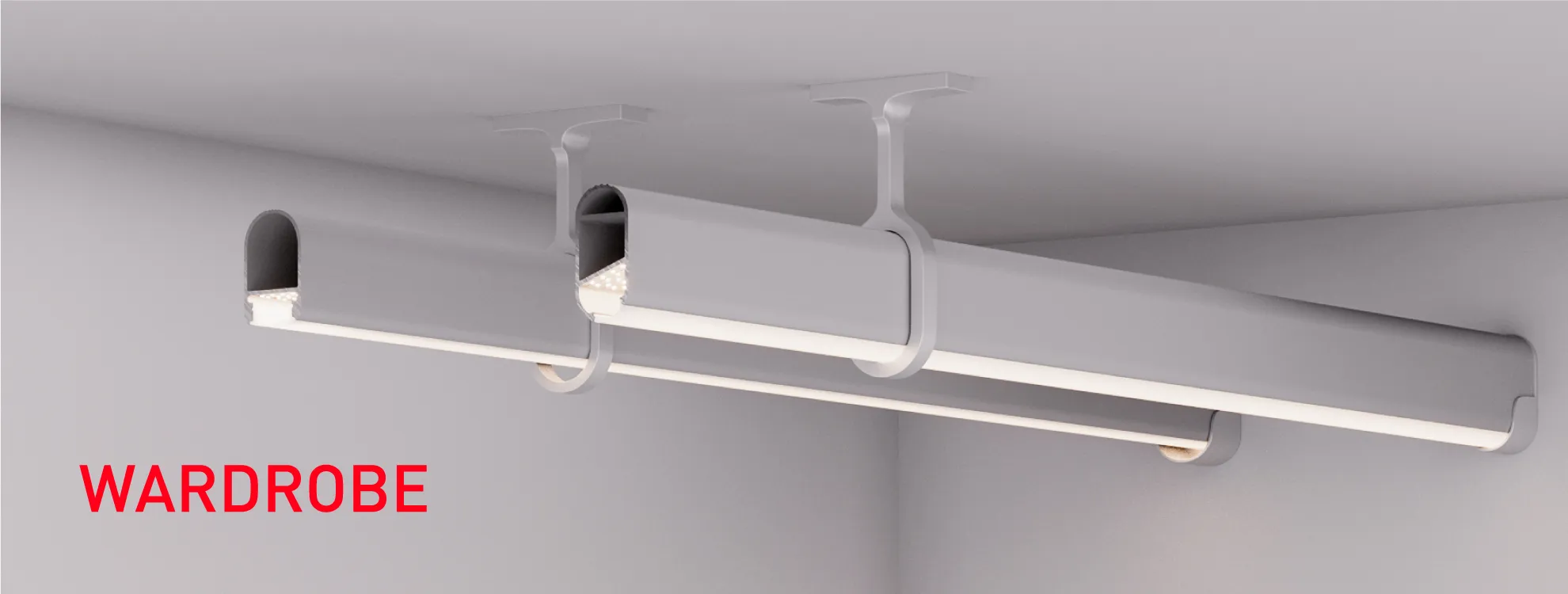 Профиль-штанга WARDROBE поможет решить сразу две задачи. С ним легко организовать освещение в шкафу или гардеробной. Кроме того, его можно использовать для компактного хранения одежды.